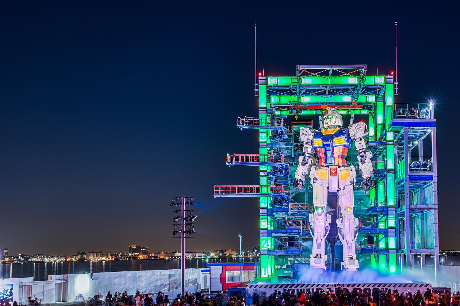 Gundam looking toward the stars in Yokohama, Japan. Gundam Factory.